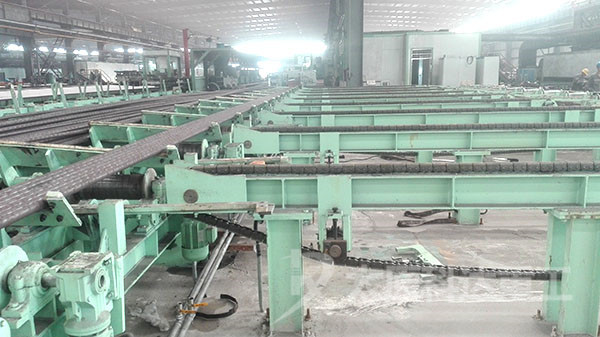 鋼管精整生產(chǎn)線包括從矯直工序開始到包裝入庫為止的矯直、吹灰、鋸切、探傷、人工檢驗(yàn)、噴標(biāo)、堆垛、打包整個(gè)工藝過程,是為了提高設(shè)備利用率降低設(shè)備投資,確保物流的暢通,減少生產(chǎn)過程中不必要的浪費(fèi)。將原先分片、分區(qū)的單線生產(chǎn)作業(yè)進(jìn)行連線布置,采用全自動(dòng)化控制。將不合格、缺陷產(chǎn)品自動(dòng)分選剔除單獨(dú)收集,各個(gè)單臺(tái)設(shè)備即可連線作業(yè)也可單獨(dú)作業(yè)。